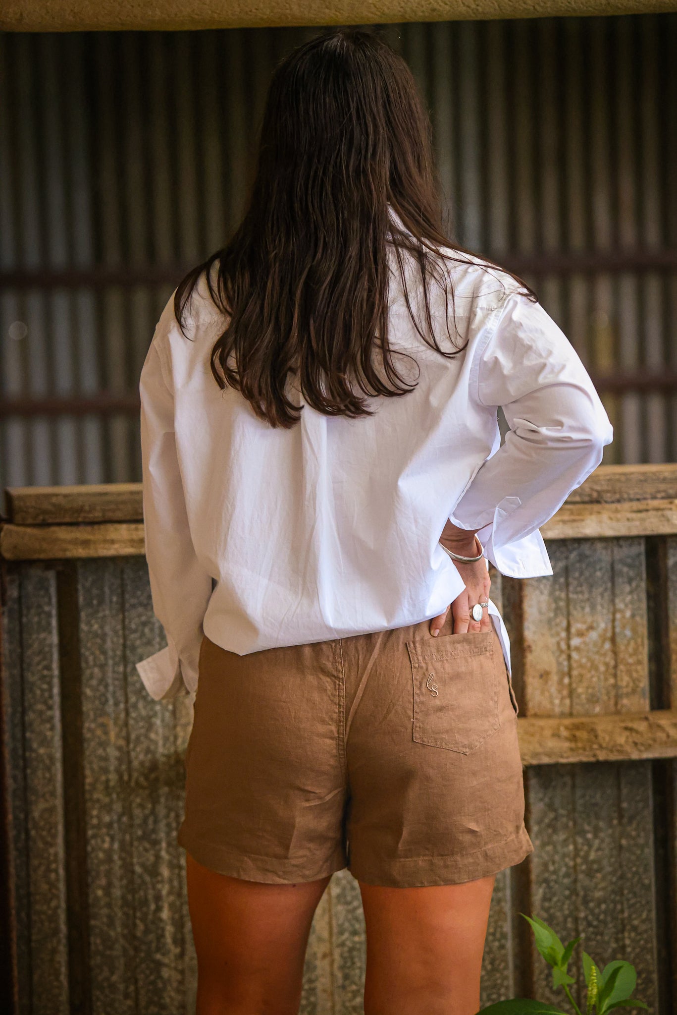 Warm earthy tones meet breezy comfort. Our Cocoa Linen Shorts are breathable, lightweight and oh-so comfortable, ideal for hot days, holiday escapes and slow sunset afternoons. Dress them up with sandals or keep them relaxed with a simple tee. A timeless neutral that belongs in every wardrobe.