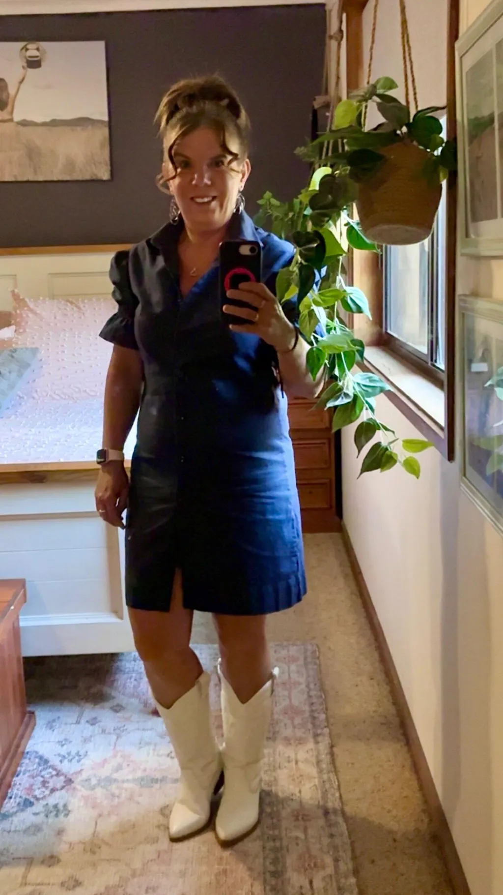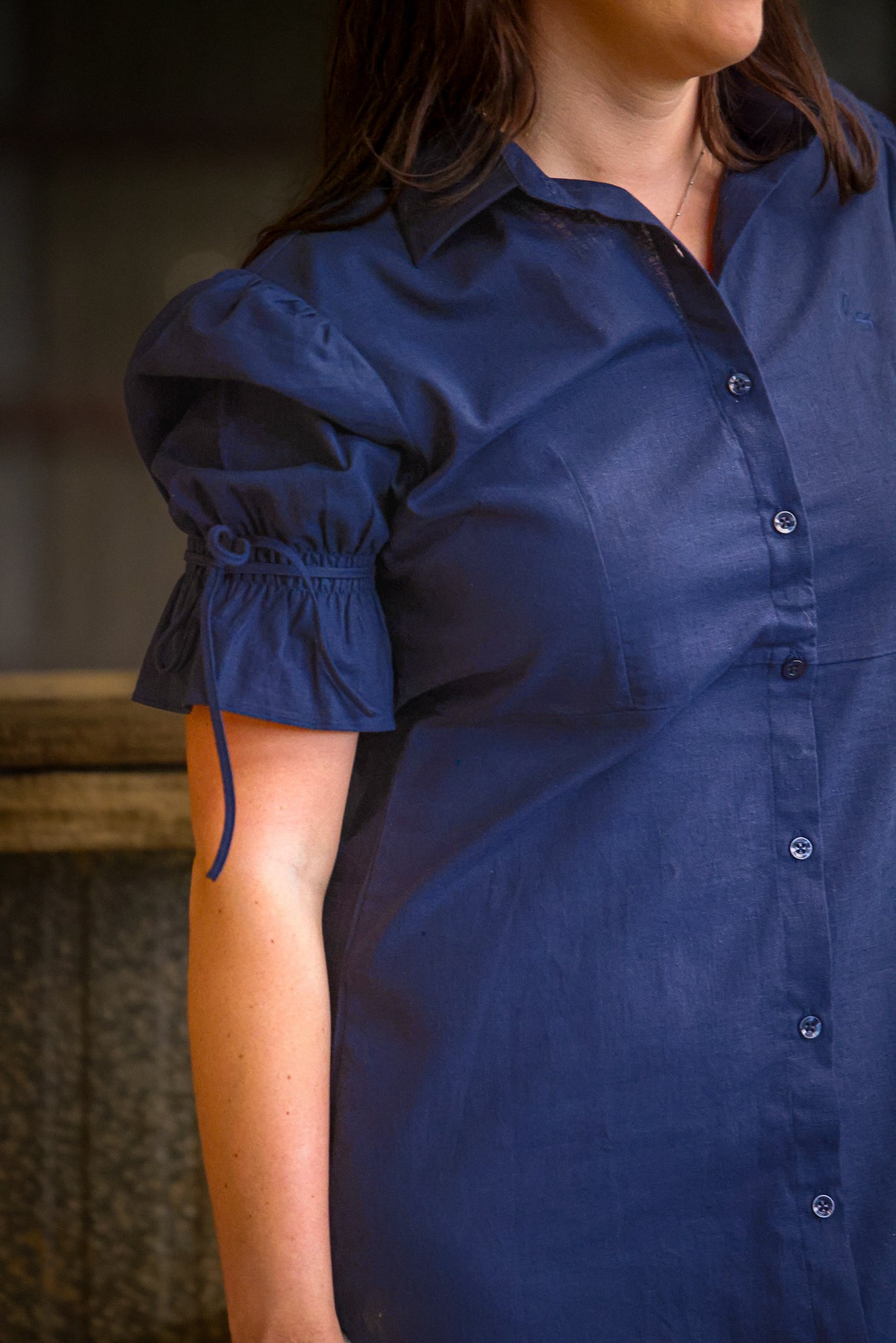 Featuring a classic collared neckline, functional button-through front and a softly shaped silhouette, this dress is flattering without feeling fitted. The subtle puff sleeve with adjustable tie detail adds a feminine touch, while the above-knee length keeps it practical and versatile.
